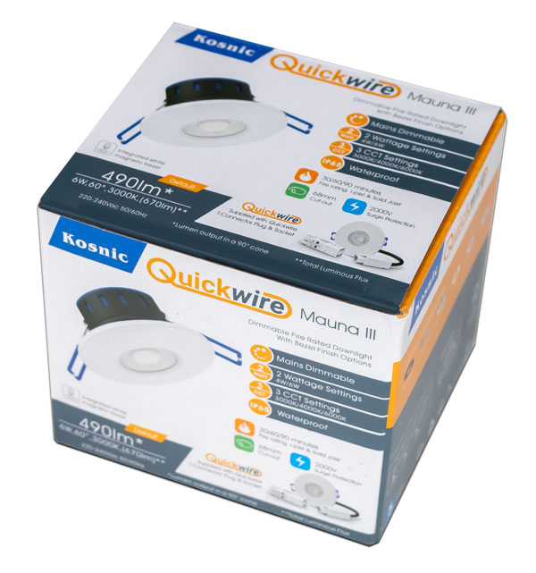 Quickwire have partnered with Konsnic to deliver an industry-trusted, market-leading fire rated downlight that’s as versatile as it is innovative. Each downlight comes factory fitted with a Quickwire T-Connector Plug & Socket. Designed for a 68mm cut-out, this downlight offers two selectable wattage settings (4W/6W) and three adjustable colour temperature settings to suit any environment, while boasting fire ratings of 30, 60, and 90 minutes.